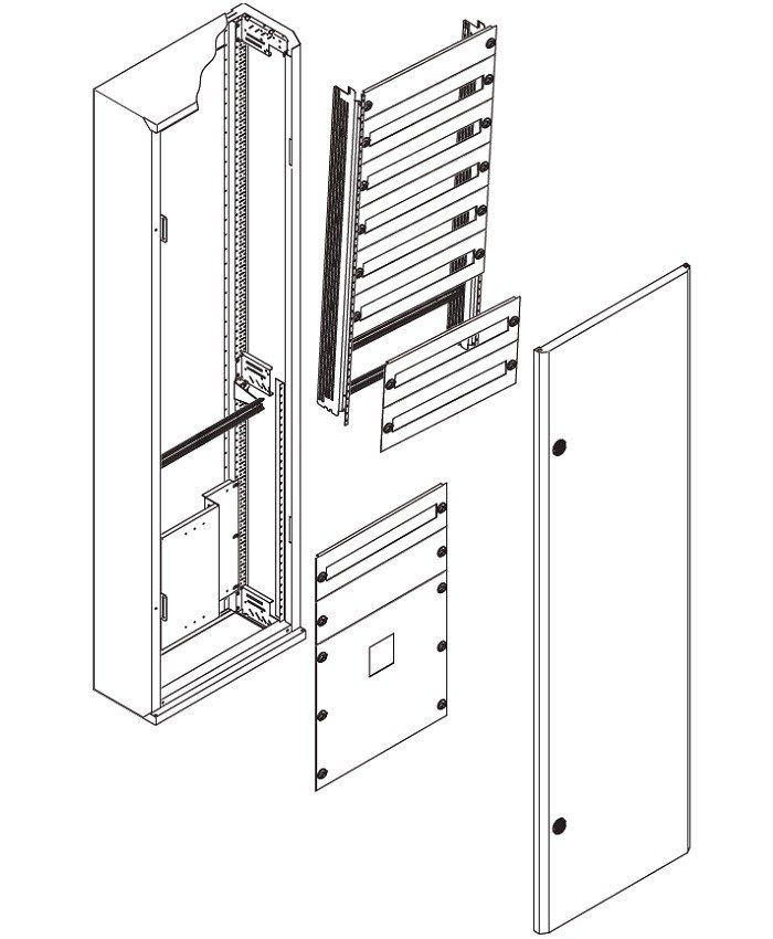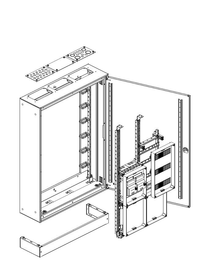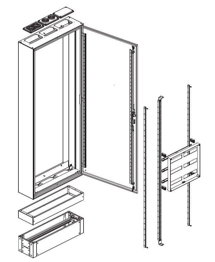 - Floor-standing, RAL7035 / RAL9016, F3A flange cut-outs top/bottom, cabinet depths between 320 and 400 mm