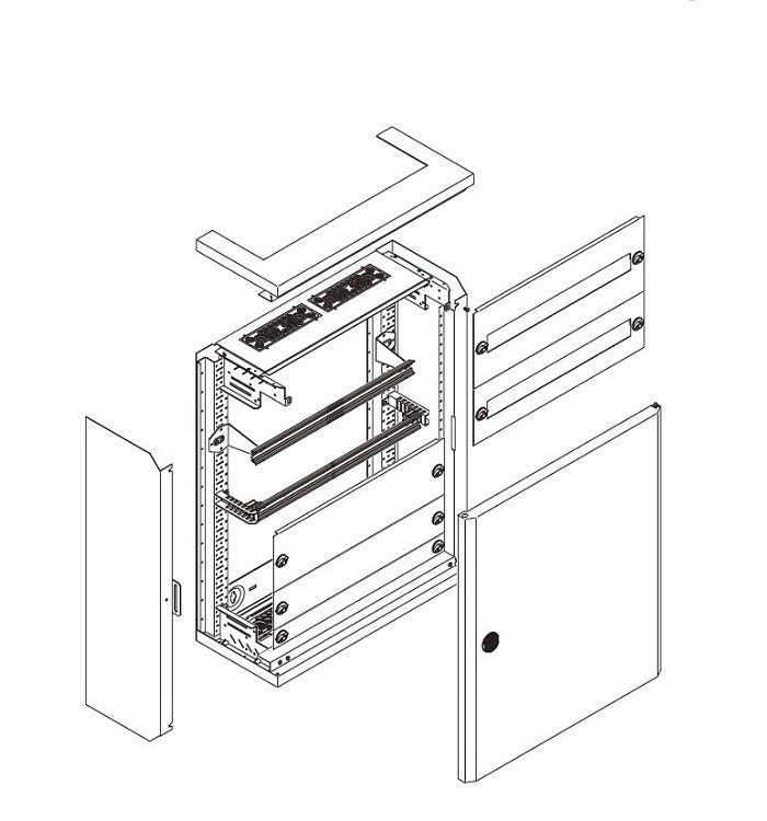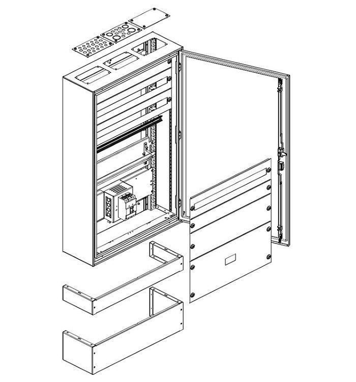 - Outdoor distribution board for stand-alone applications, RAL 7035, depth between 180 and 320 mm based on standard polyester base A-KU